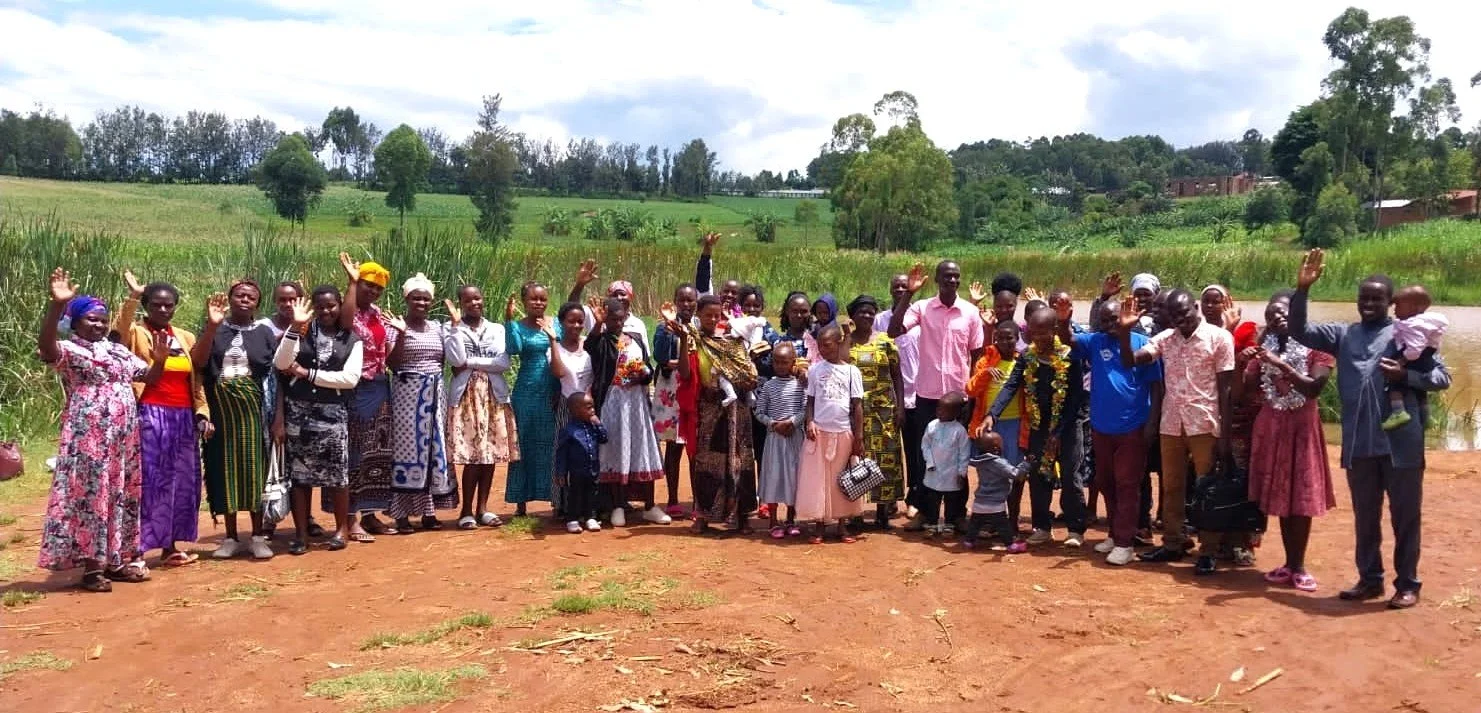Connect Group from Kenya in front of the church building constructed with their own hands.